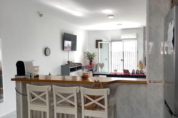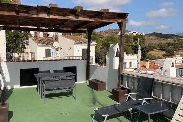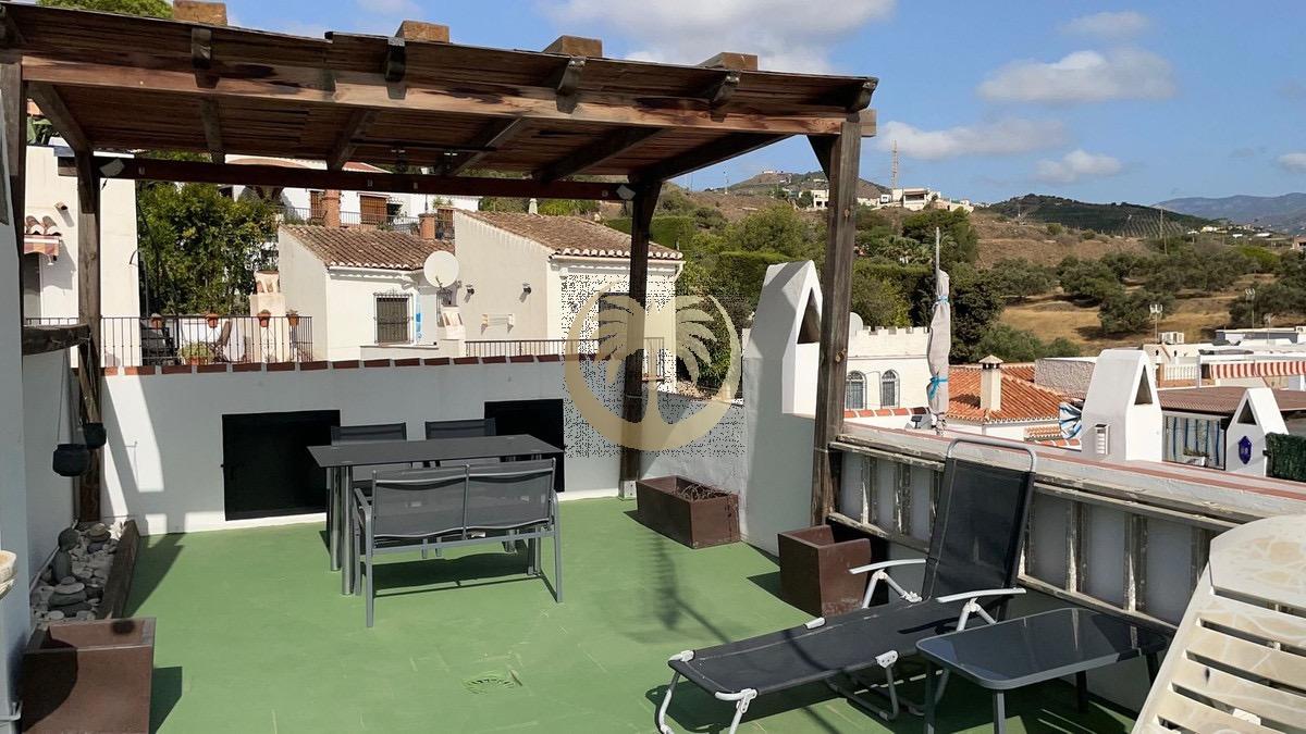 Immaculate townhouse in Punta Lara (Nerja) on 3 floors. The main house is on 2 levels and has 2 large bedrooms, 1 bathroom, spacious lounge with balcony and fully fitted kitchen. There's a large south facing roof terrace with panoramic sea and mountain views, with pergola, dining area, water and electrical connection, barbecue and multiple storage. The under built of the house has been converted in a self contained studio with fitted kitchen and bathroom and separate entrance.