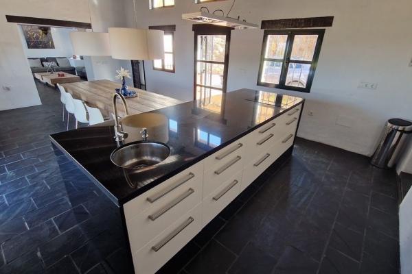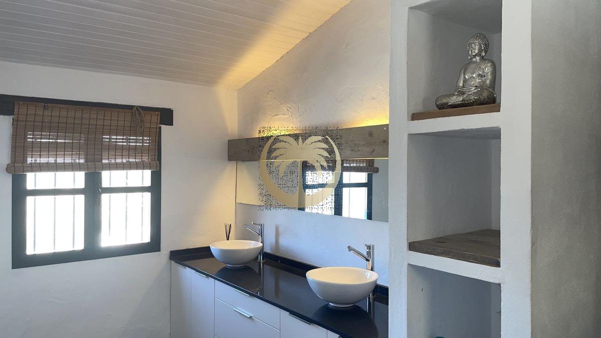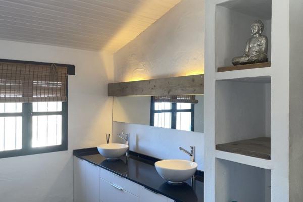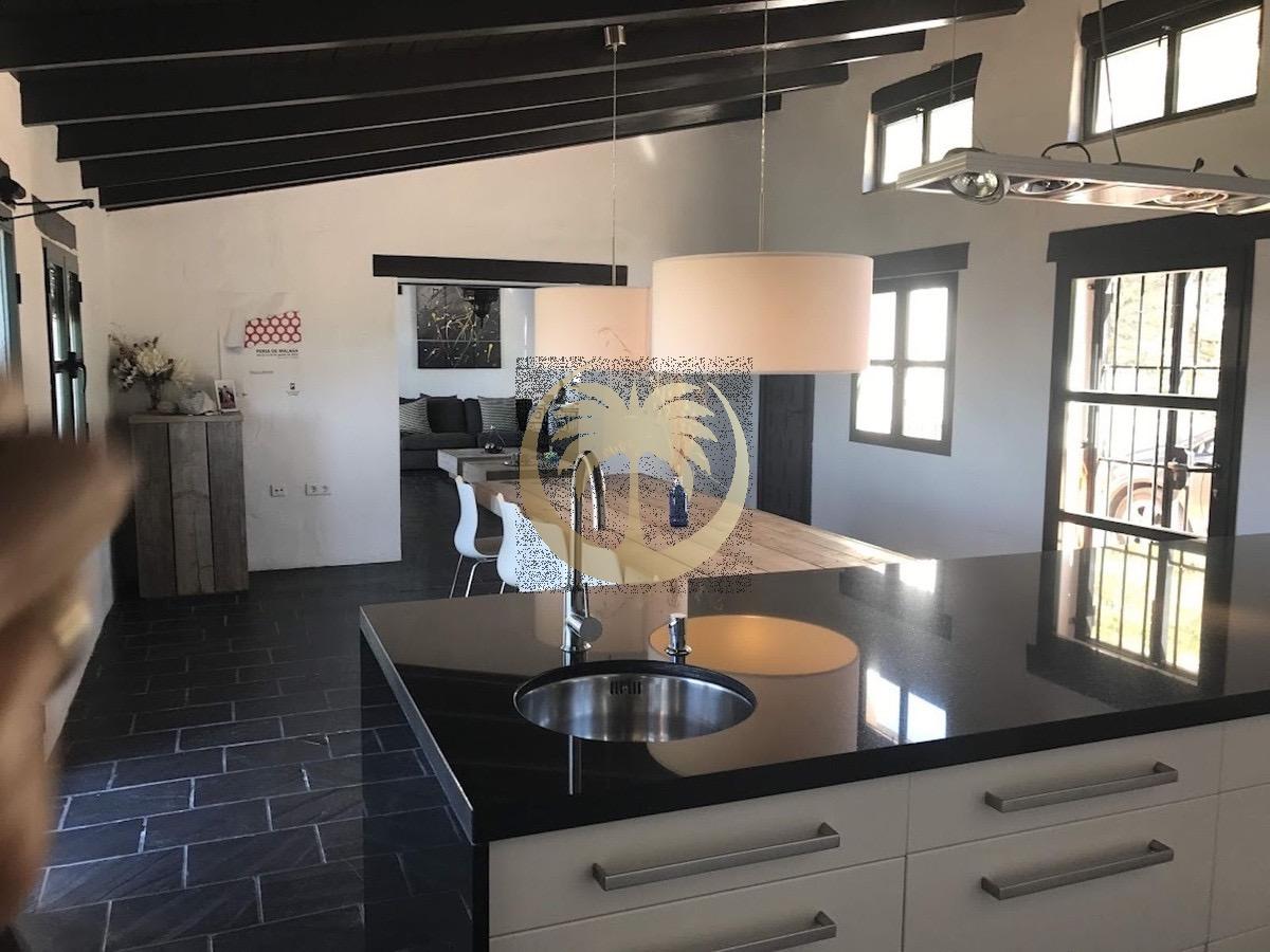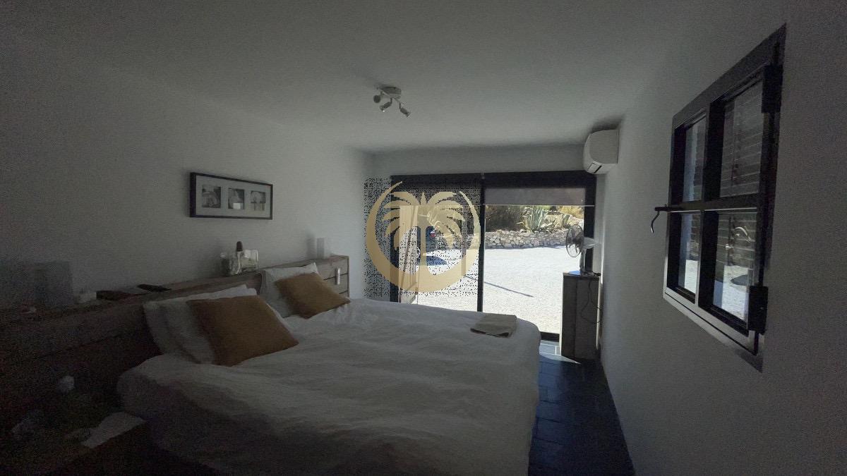 You’ll find a modern yet warm decor with all comforts. The villa has been totally renovated to the highest standard, which makes it even better than most new built villas. All on one level there's a spacious lounge area directly connected to the extended top quality kitchen, with separate utility room. There're 3 large bedrooms, 2 bathrooms and a third separate toilet. The master bedroom has a large ensuite bathroom and is situated on the left side of the villa. The other 2 bedooms are situated on the right side of the villa, which creates maximum privacy. These 2 bedrooms can also be accessed directly from the outside and share a spacious bathroom with shower. The many large double glazed windows makes the property very light and bright. There's another large room under the roof, accessed by an outside staircase, which can be converted into a guest room with shower and small kitchenette.