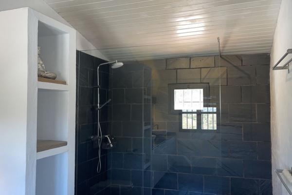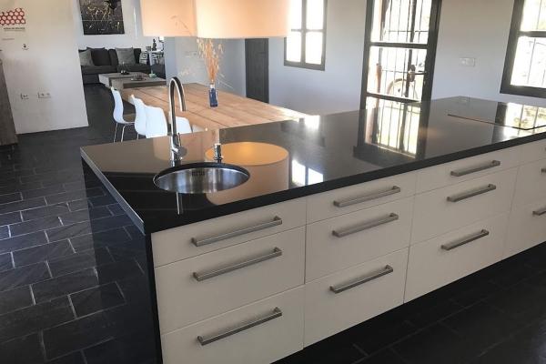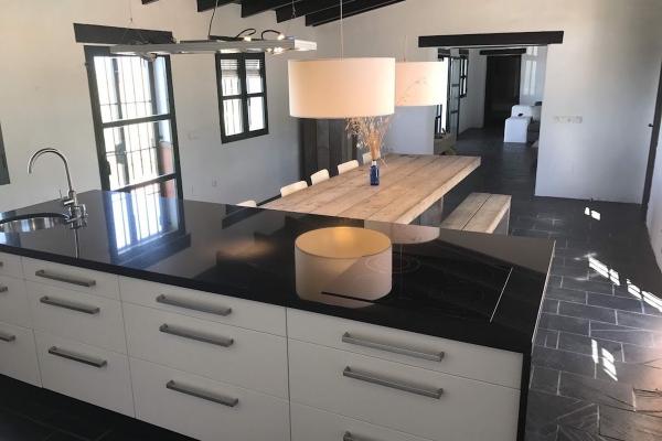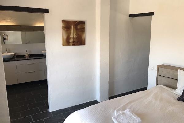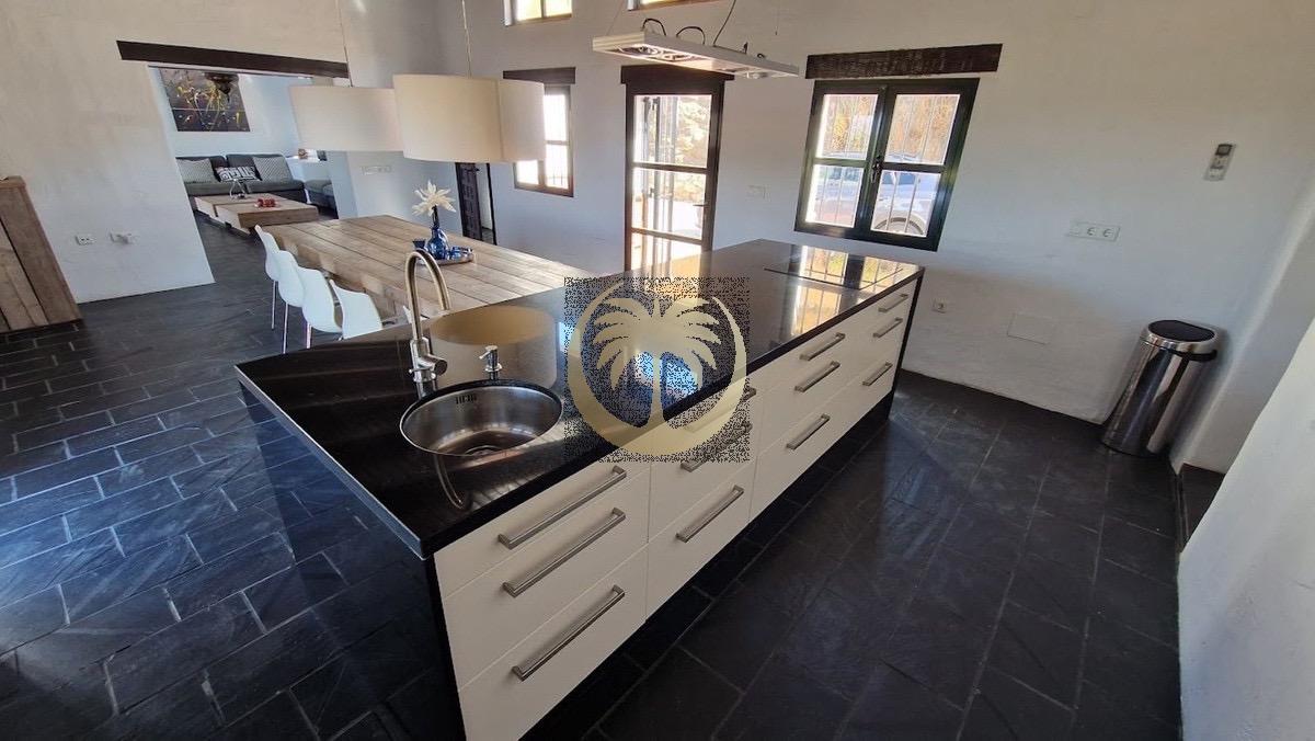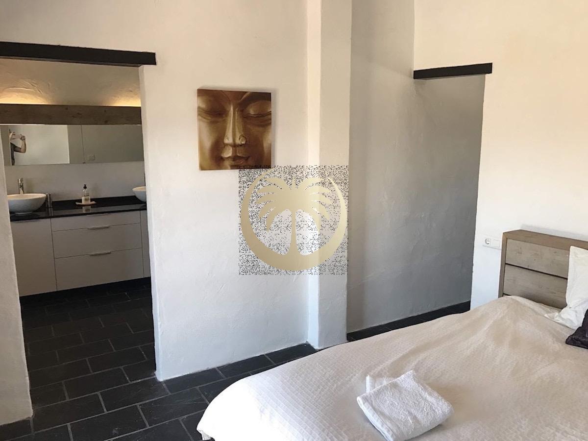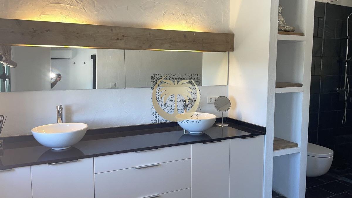 You’ll find a modern yet warm decor with all comforts. The villa has been totally renovated to the highest standard, which makes it even better than most new built villas. All on one level there's a spacious lounge area directly connected to the extended top quality kitchen, with separate utility room. There're 3 large bedrooms, 2 bathrooms and a third separate toilet. The master bedroom has a large ensuite bathroom and is situated on the left side of the villa. The other 2 bedooms are situated on the right side of the villa, which creates maximum privacy. These 2 bedrooms can also be accessed directly from the outside and share a spacious bathroom with shower. The many large double glazed windows makes the property very light and bright. There's another large room under the roof, accessed by an outside staircase, which can be converted into a guest room with shower and small kitchenette.