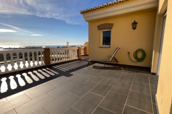 The top floor enjoys 2 bedrooms, with en suite bathrooms. The master bedroom has a large terrace with views of the sea and mountains.