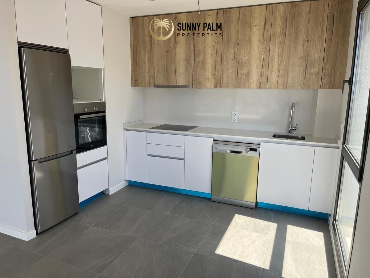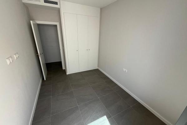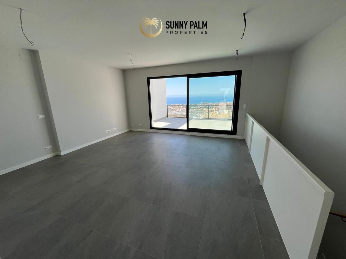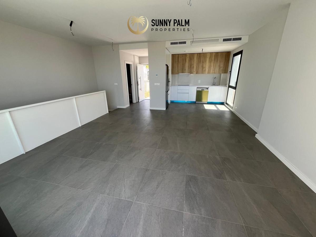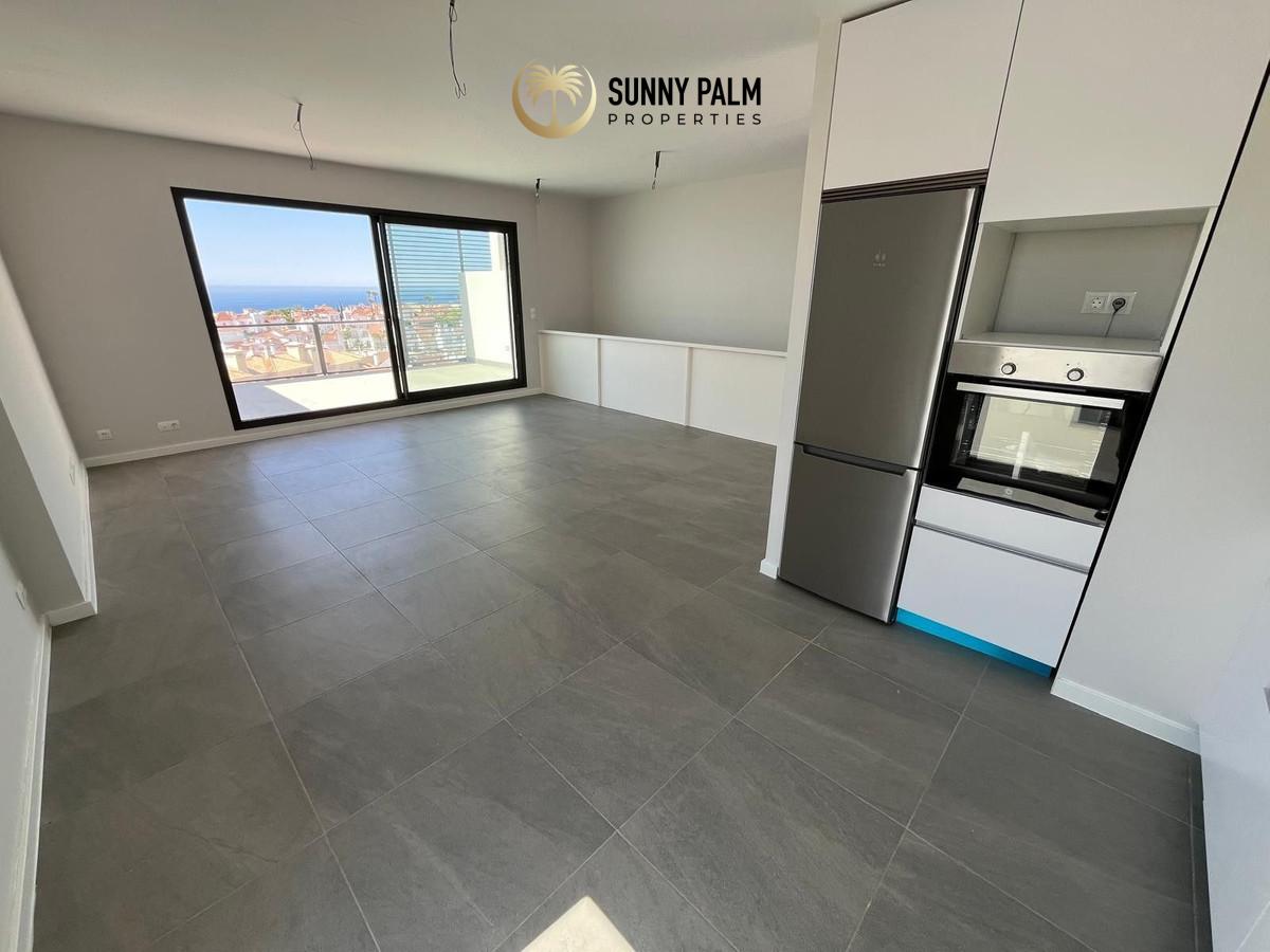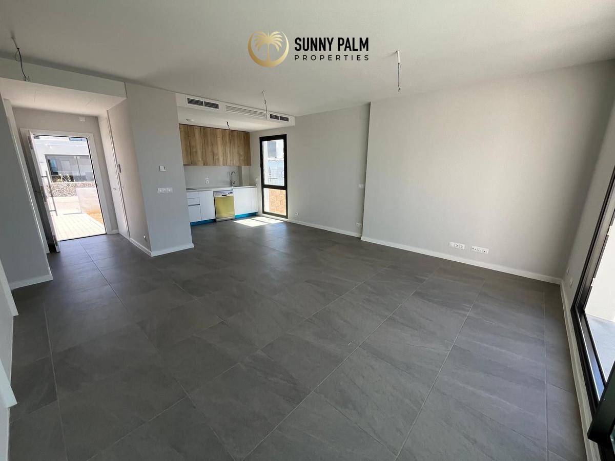 You enter the upper floor of the house, where you have an entrance hall and a guest toilet and then you go into the kitchen and living room and from the living room you have a fantastic panoramic view of the sea. In continuation of the living room there is a 24m2 terrace that is south facing, so with lots of sun.
